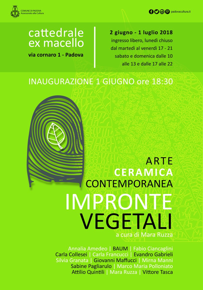 MANIFESTO_master_improntevegetali-2 Next Publicato 30 Maggio 2018 alle 8268 × 11811 li IMPRONTE VEGETALI, torna l’arte ceramica contemporanea alla cattedrale ex Macello di Padova con la forza dirompente della natura! (1 parte)