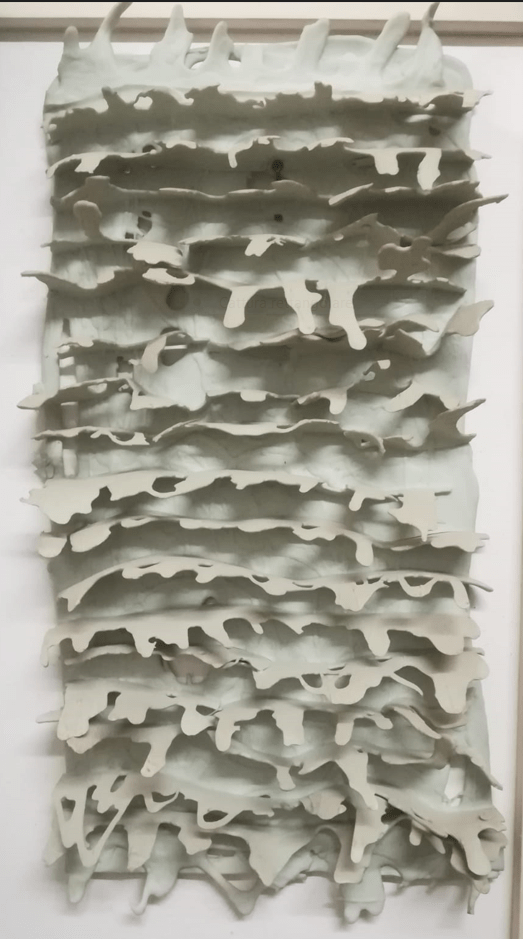 In un quadro geopolitico complesso e polarizzato, significativa ci è parsa l’opera World in cui Nicola Boccini sovrappone trame rettilinee – che potrebbero ricordare i confini tra Stati imposti in epoca coloniale – ad una Natura che questi stessi confini li ignora e li travalica. Questa è la riflessione dell’artista presente alla Biennale architettura 2021 e 2023 e selezionato al sessantunesimo e sessantaduesimo concorso di Faenza. Un’opera in cui troviamo unite una perizia tecnica ed innovativa notevoli – la Porcelain veins di sua sperimentazione – ed un messaggio civile riconosciuto, così come in altre sue opere.