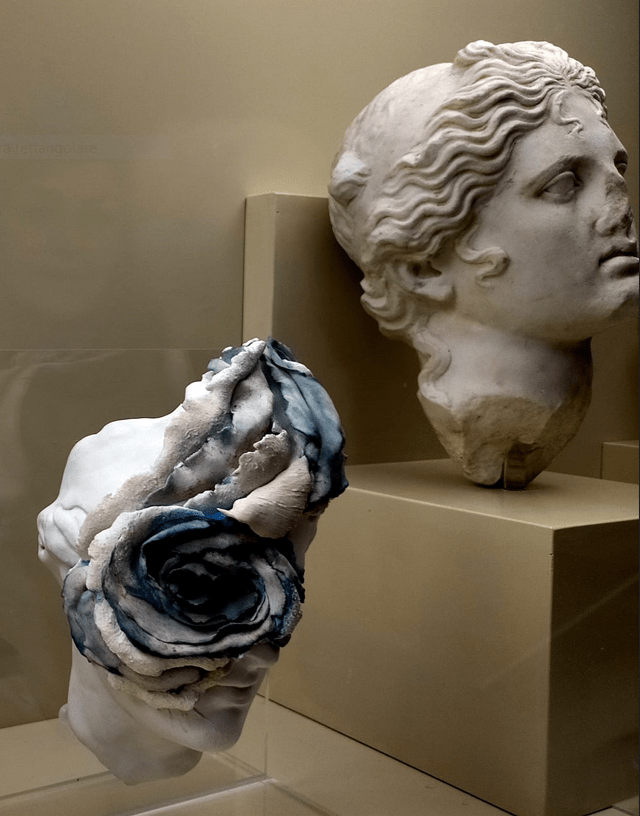 In sintesi dobbiamo parlare di citazioni di materiali, temi, destinazioni d’uso – gli albarelli antichi e quelli contemporanei di Mirco Denicolò affiancati – che vengono riprese in ottica di affinità o contrasto. Abbiamo quindi una riflessione sul valore che attribuiamo agli oggetti e alle relazioni umane, riflessione sollevata dalla performance di arte relazionale che Formisano ha condotto all’Auberge de France a Rodi, il risultato della quale è esposto nel settore numismatico del palazzo dei consoli.